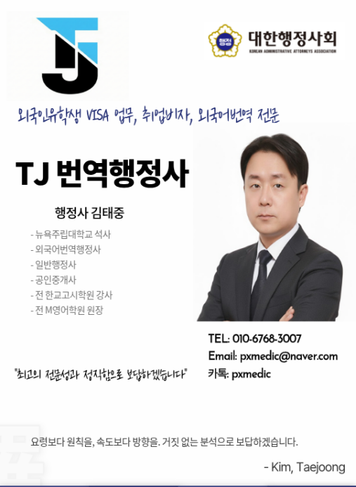 ​안전하고 즐거운 한국 생활, 티제이 행정사가 파트너가 되어 드리겠습니다.